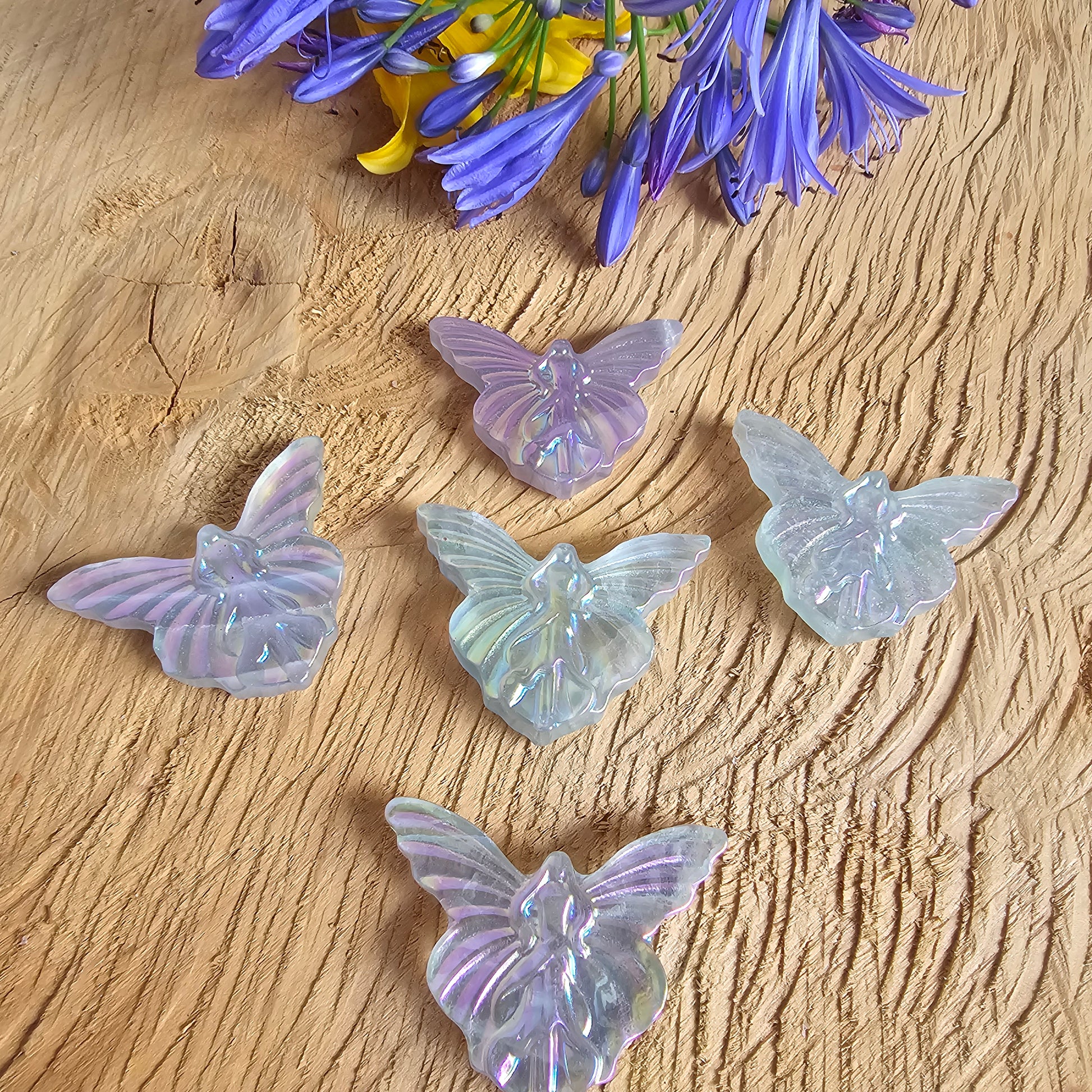 Much like Moldavite, Angel Aura Quartz brings massive amounts of energy to its user through high vibrational frequencies. Its power opens the crown and etheric chakra, channeling joy, clarity, and truth from the divine into your form.