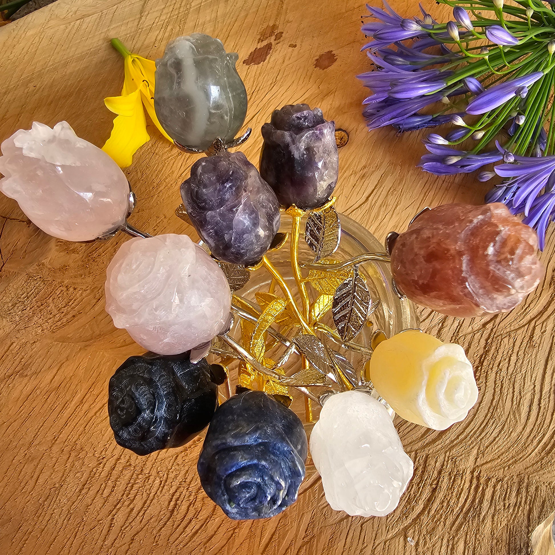 Beautiful Crystal roses on a stem and leaves of silver or gold colored metal.