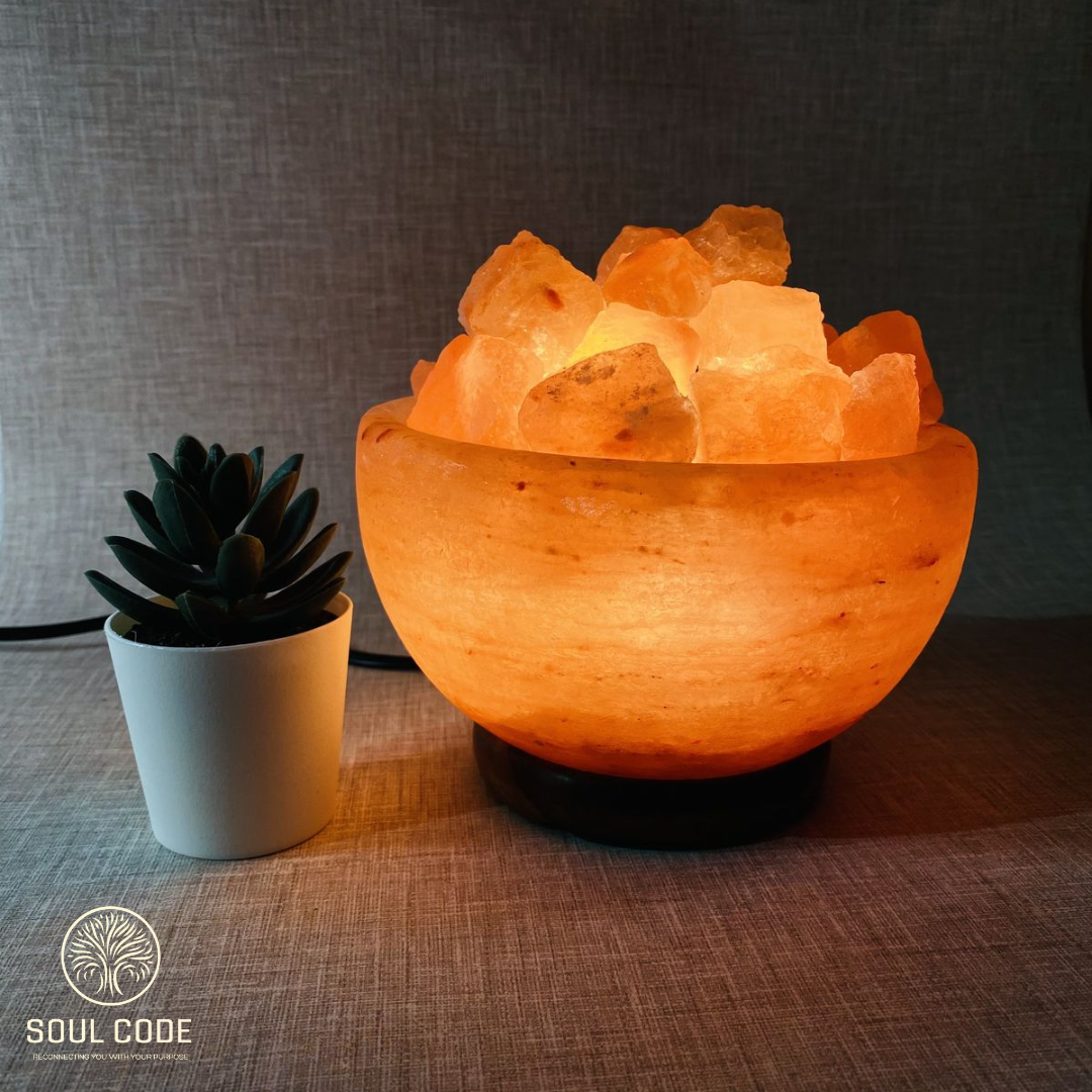 A ritual in a bowl, our Himalayan Salt Bowl Lamp is a stunning fusion of form and function. Filled with raw salt chunks and softly illuminated from within, it creates a dynamic glow that feels like a living flame.