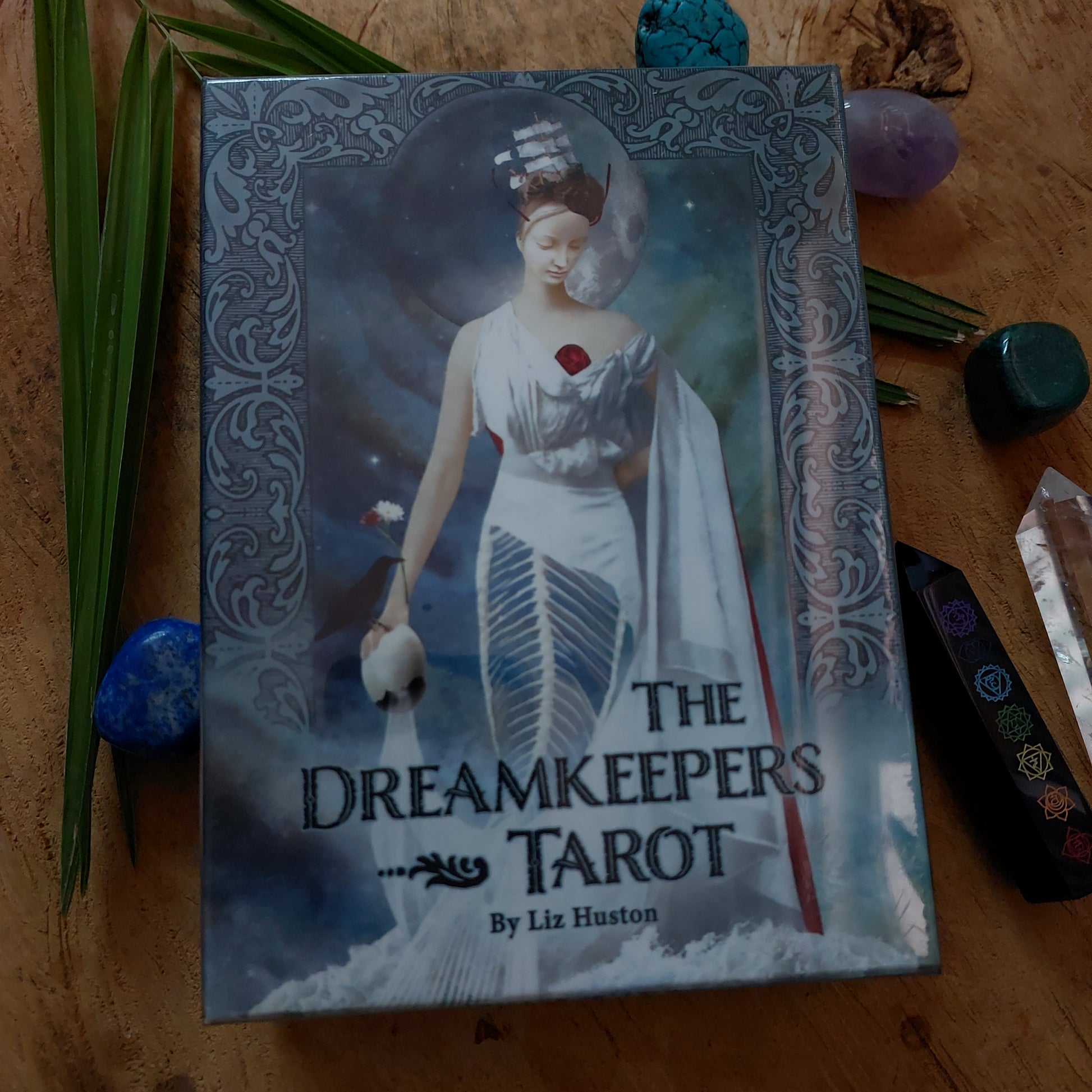 The intriguing imagery of Dreamkeepers Tarot represents years of Liz Huston’s journey of personal growth and healing. Huston presents tarot as a mirror that reflects our deep inner truths and reveals our hidden motivations, beliefs and expectations. Her art creates an alchemical blend of multiple paint media with digital photographic montage, offering signs and symbols to help the reader interpret tarot and all its wisdom. Includes 78-card deck and 180-page illustrated guidebook.