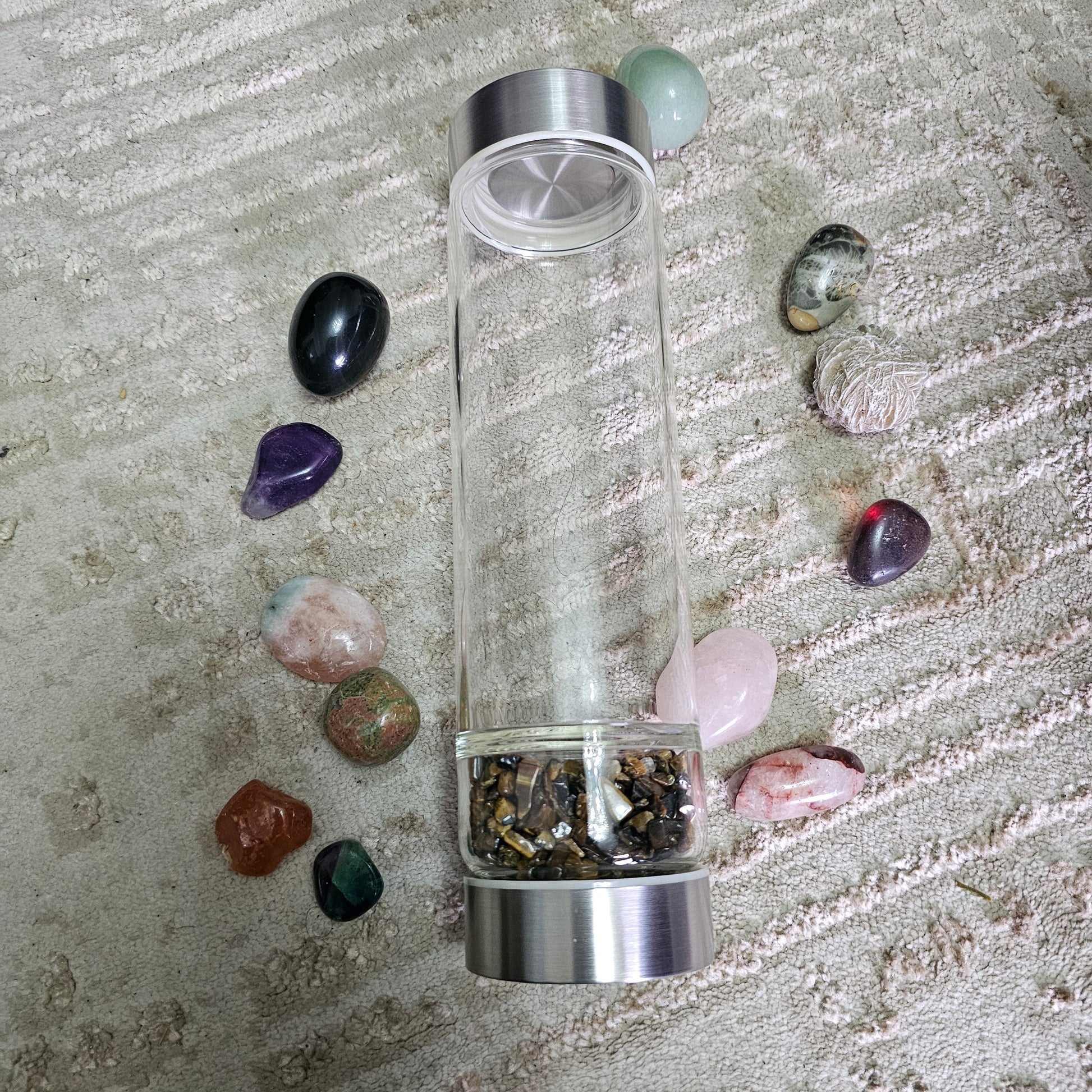 Our glass water bottle contains 100% pure, genuine crystal. Fill it up with water to create your own crystal elixir.